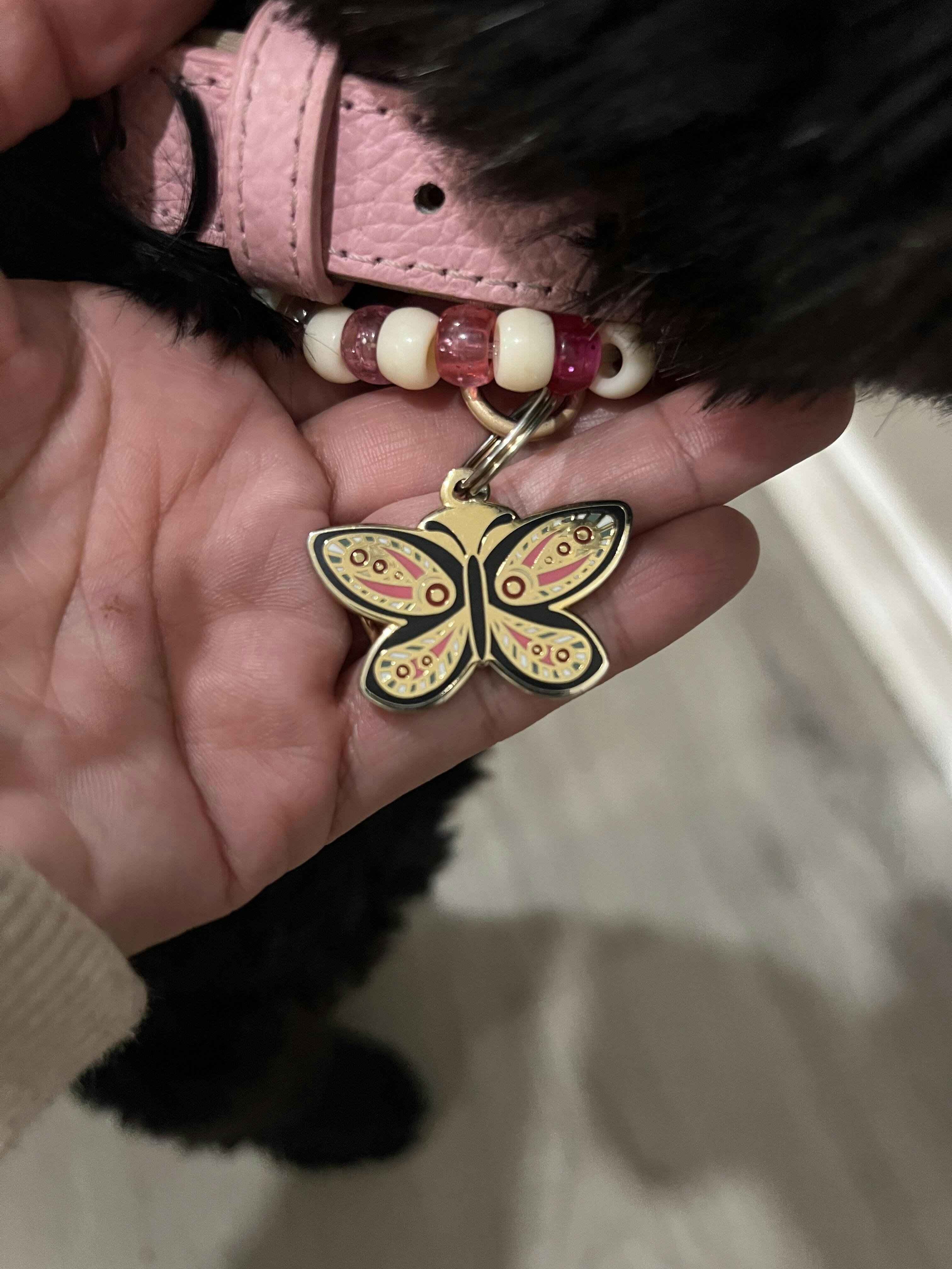 I recently purchased the Butterfly Pet ID Tag, along with another Pet ID Tag and I adore it! The color and design are beautiful! The perfect Tags for my sweet pups!